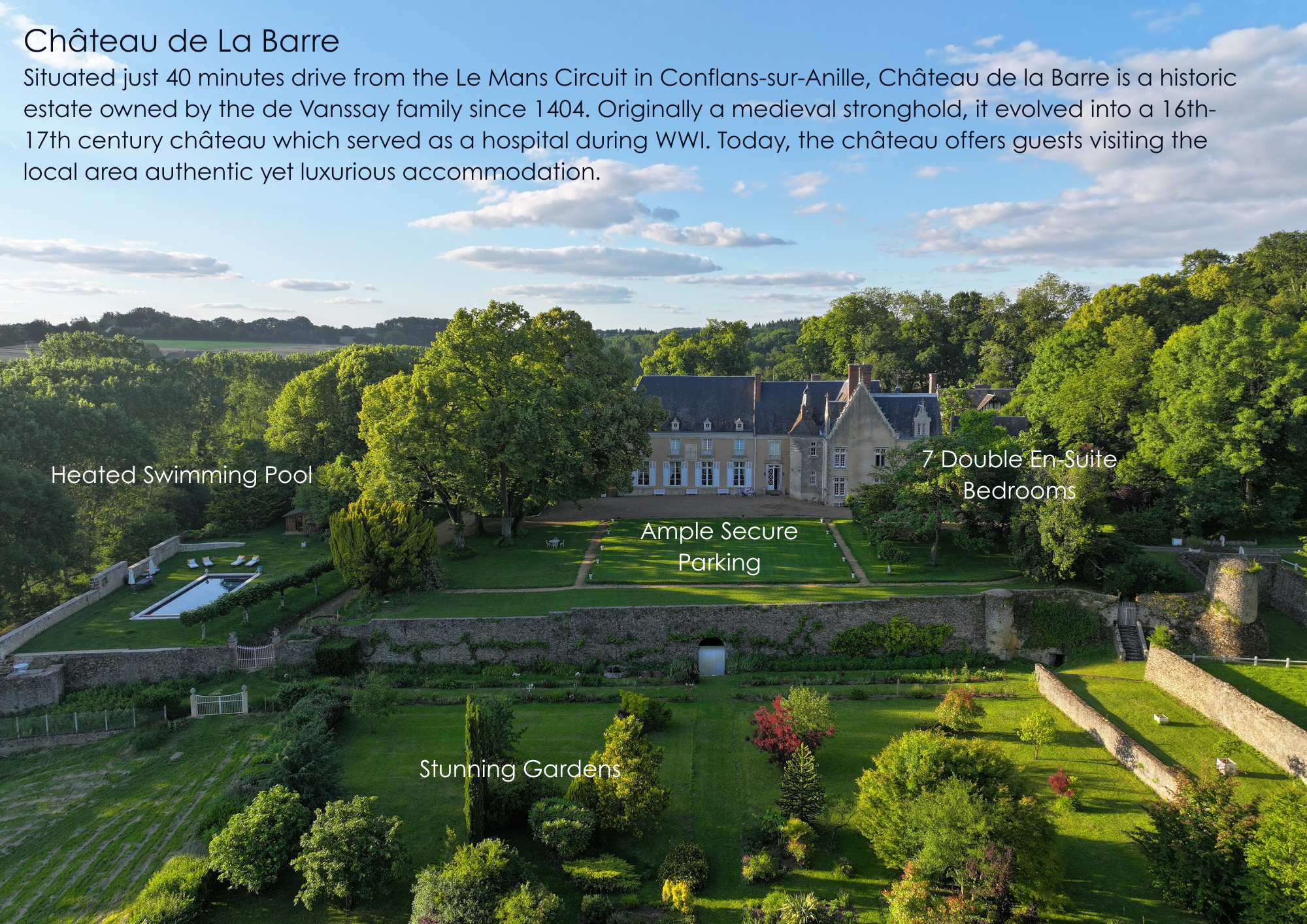 Our luxury Château, set in the rolling countryside of the Sarthe is just 45 minutes from the famous Le Mans motor racing circuit and promises a highly exclusive Le Mans experience.